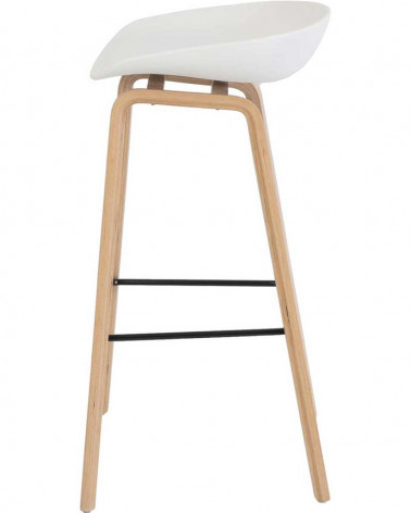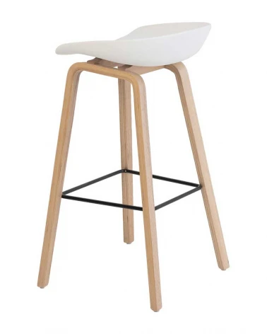 Barová stolička RONIE vyniká svojou elegantnou konštrukciou s drevenými nohami a čiernym sedadlom z polypropylénu, ktoré je ergonomicky navrhnuté pre maximálne pohodlie. Kombinácia štíhlych línií a kovovej opierky na nohy zaručuje nielen stabilitu, ale zároveň dodáva stoličke moderný a sofistikovaný vzhľad.
