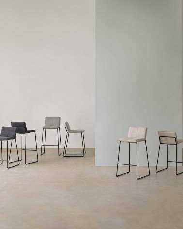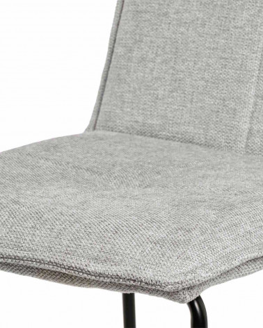 Jej konštrukcia má subtílne kovové nohy, ktoré zaručujú stabilitu a odolnosť, spolu s čalúnením zo svetlo sivej látky (100 % polyester). Okrem toho barová stolička ABOT obsahuje integrovanú opierku na nohy, ktorá zabezpečuje pohodlné a uvoľnené sedenie.