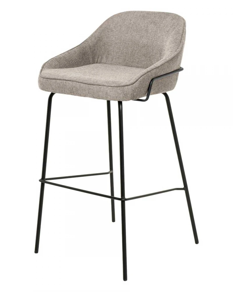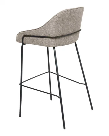 Táto barová stolička je ideálna do kuchýň alebo barov vďaka svojmu minimalistickému a elegantnému dizajnu. Sedadlo je čalúnené látkou v svetlo hnedej látke (100 % polyester), ktorá ponúka neutrálny a sofistikovaný vzhľad. Kovová konštrukcia a nohy dodávajú moderný a odolný charakter.