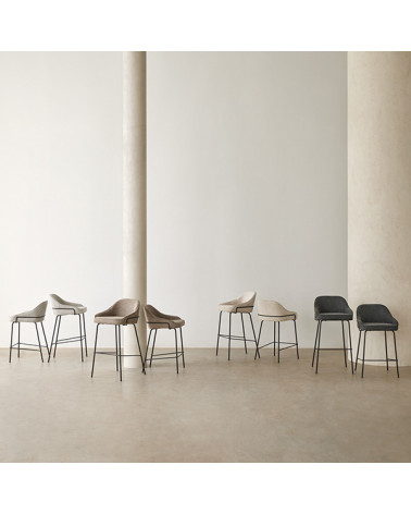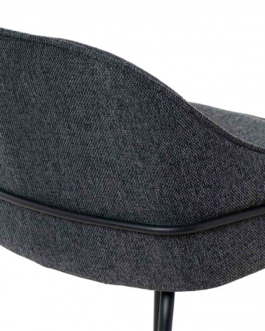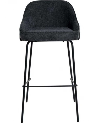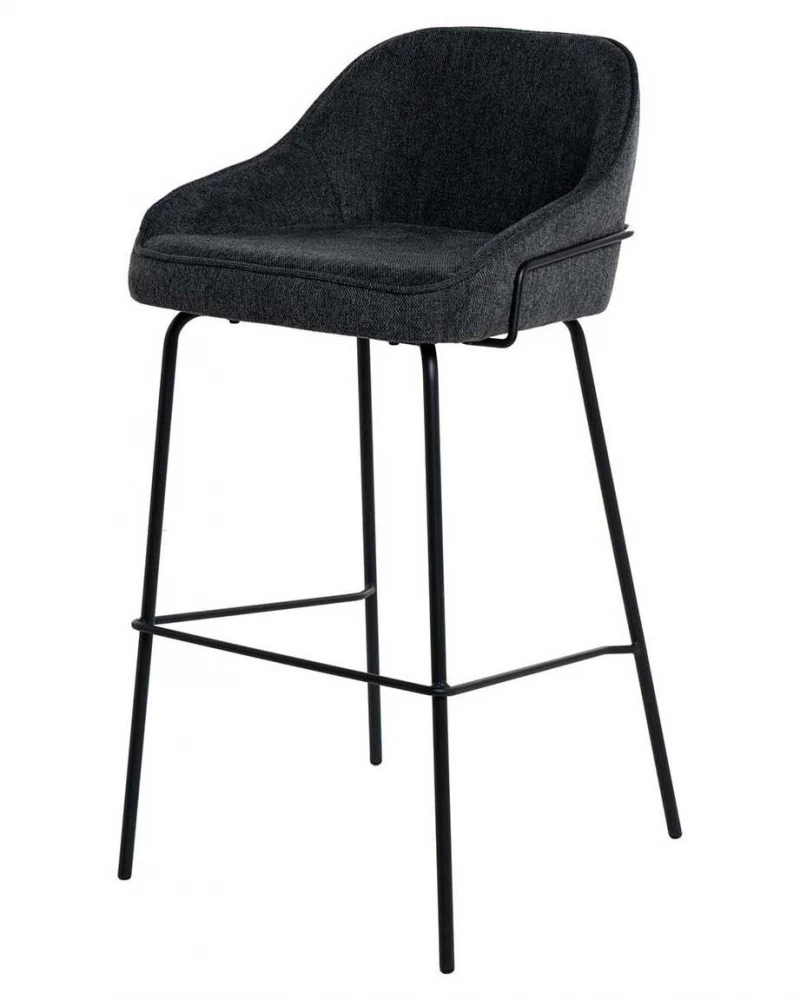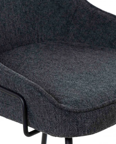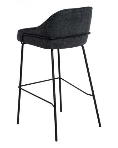 Táto barová stolička je ideálna do kuchýň alebo barov vďaka svojmu minimalistickému a elegantnému dizajnu. Sedadlo je čalúnené tmavosivou látkou (100 % polyester), ktorá ponúka neutrálny a sofistikovaný vzhľad. Kovová konštrukcia a nohy dodávajú moderný a odolný charakter.