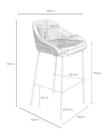 Barová stolička LOUIS vyniká integrovaným operadlom a opierkami na ruky, ktoré poskytujú extra pohodlie a oporu, vďaka čomu je ideálna aj na dlhšie sedenie.