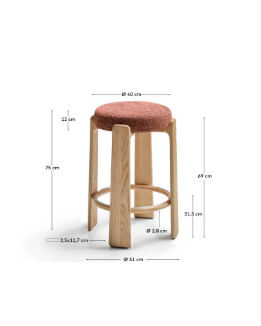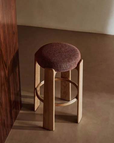 Barová stolička bez operadla Granite, Terakota / prírodné drevo, KaveHome