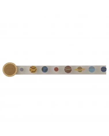 Vešiak Space od Bloomingville MINI je dokonalým darčekom pre zvedavé deti. Tento očarujúci vešiak je vyrobený z MDF dreva s certifikáciou FSC a zobrazuje našu fascinujúcu slnečnú sústavu s názvami planét napísanými nad každým háčikom. S ním sa deti môžu zoznámiť s planétami zábavným a útulným spôsobom, pričom majú aj praktické miesto na zavesenie búnd a tašiek. Ideálna kombinácia učenia, funkcie a estetiky.