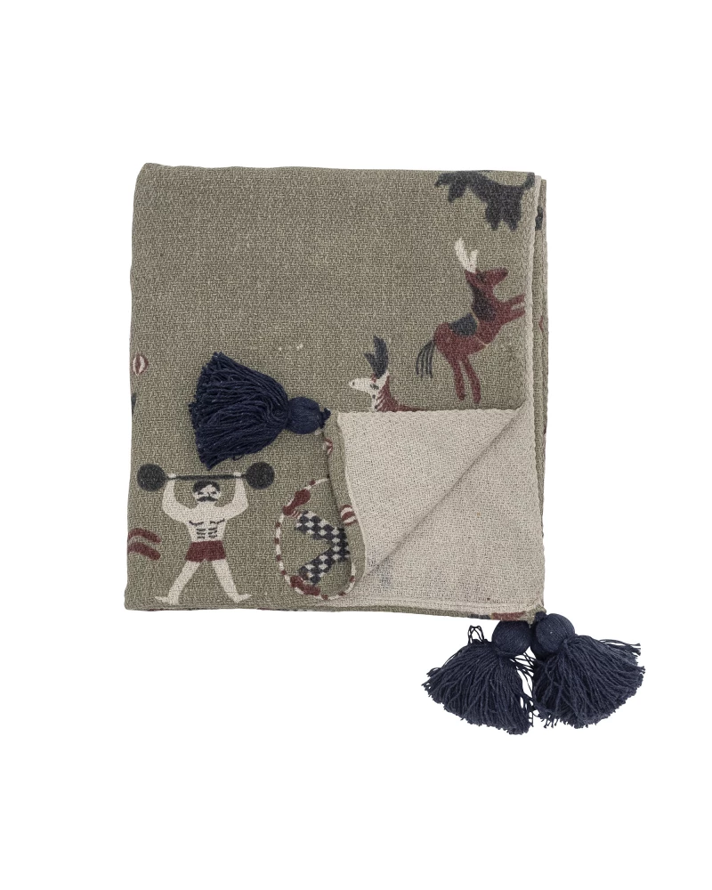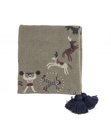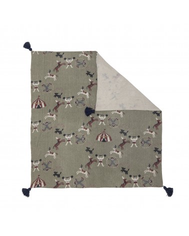 Prehoz Loome má sladkú cirkusovú potlač. Je mäkký, teplý a hodí sa k vankúšu Loome. Prehoz je vyrobený z recyklovanej bavlny. V rohoch má chutné strapce. Využitie nájde všade - v kočíku, v obývačke, či v detskej izbe.