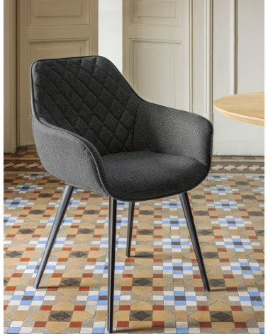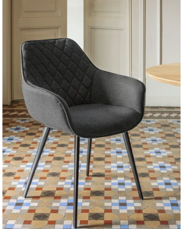 Stolička Amira nie je len miestom pre sedenie s pohodlnými opierkami pre ruky a diamantovou výstelkou. Teraz je čalúnená tmavosivou látkou, ktorá je odolná voči škvrnám a odstraňuje akékoľvek náhodné tekutiny, ktoré by na ňu mohli prísť. Čistenie je takmer hračka. Je podopretá pevnou konštrukciou s oceľovými nohami a elegantným matným čiernym povrchom. Ak máte štýl vo všetkom, nezabudnite naňho ani pri sedení.