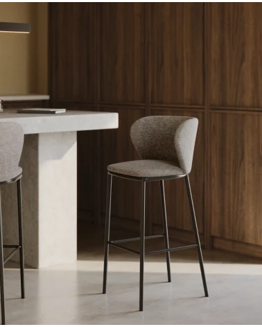 Barová stolička Ciselia čalúnená ženilkovou látkou. Kovová konštrukcia s matnou čiernou povrchovou úpravou. Drevo s certifikátom FSC Mix Credit, vyrobené zo zmesi materiálov z lesov certifikovaných FSC a dreva kontrolovaného FSC. Navrhnutá pre maximálne pohodlie v modernom strihu. Dostupná v rôznych povrchových úpravách a farbách.