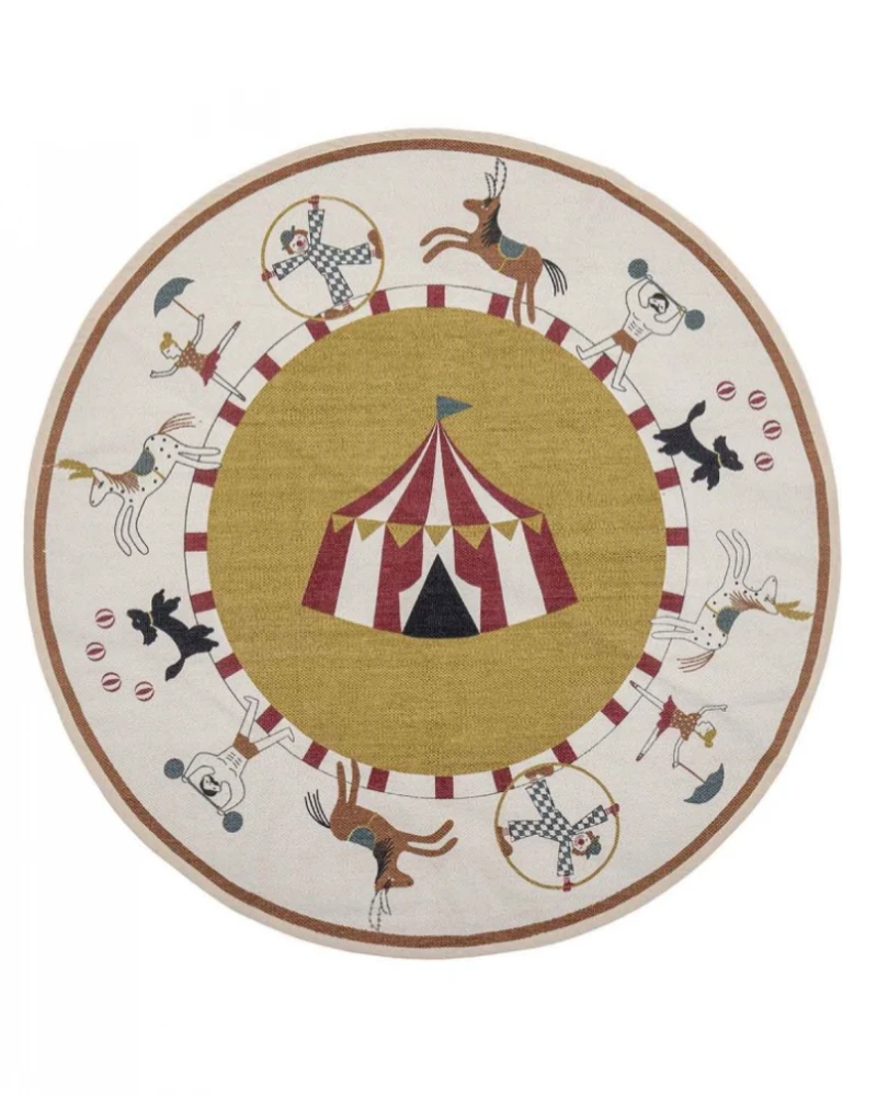 Zahrajte sa na tomto inšpiratívnom koberci Ville od Bloomingville MINI s našou obľúbenou cirkusovou potlačou. Cirkusová potlač pozýva na hranie a veľkosť 110 cm ju predurčuje na umiestnenie kdekoľvek v detskej izbe alebo ho môžete umiestniť v ktorejkoľvek časti domu.