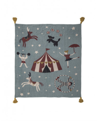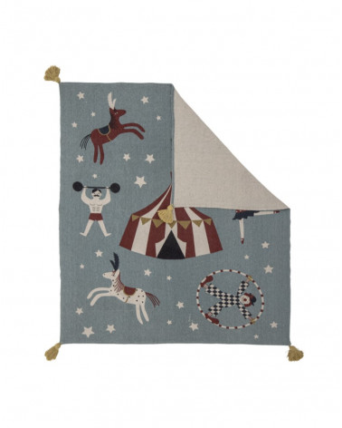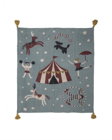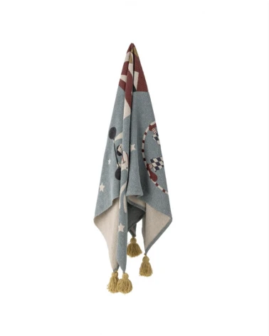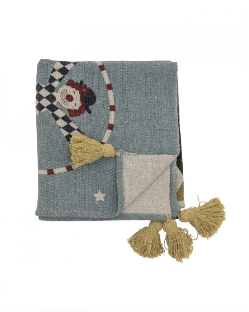 Prehoz Prana má hravú cirkusovú potlač. Je mäkký, teplý a príjemný. Je vyrobený z recyklovanej bavlny a v rohoch má veselé strapce. Využitie nájde všade - v kočíku, v obývačke, či v detskej izbe.