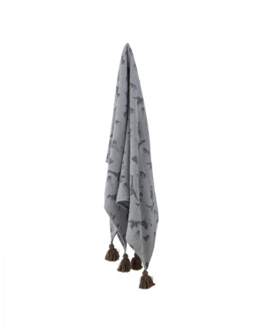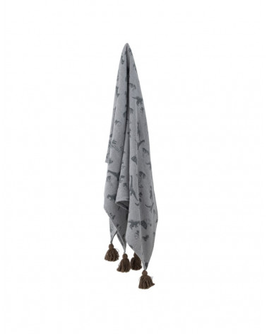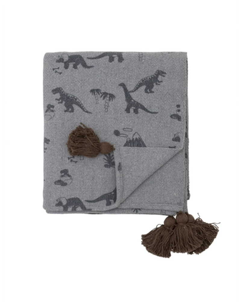 Bongo prehoz od Bloomingville MINI je vyrobený z recyklovanej bavlny s potlačou dinosaurov. Deka má v každom rohu strapce pre útulný vzhľad.