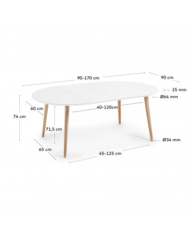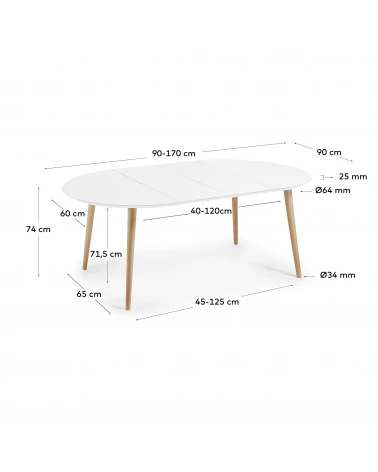 Rozkladací stôl Oqui, Biely, priemer 90 cm, KaveHome