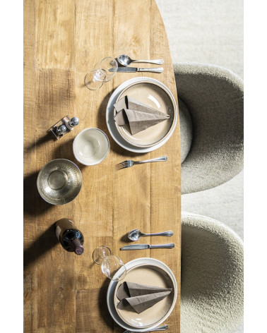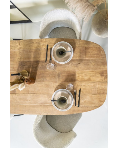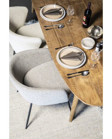 Jedálenský stôl Tabassum od Eleonora spája udržateľnosť so štýlom. Tento kus nábytku je starostlivo vyrobený z recyklovaného teakového dreva, vďaka čomu je ekologickou voľbou. Jeho obdĺžniková doska má zaoblené rohy, ktoré dizajnu dodávajú jemný nádych, zatiaľ čo zúžené nohy ponúkajú stabilitu a jemnú modernosť. Tento jedálenský stôl vyžaruje farmársky alebo bohémsky minimalistický šarm.