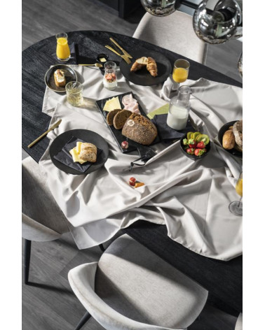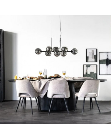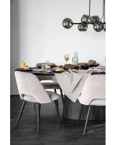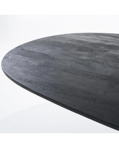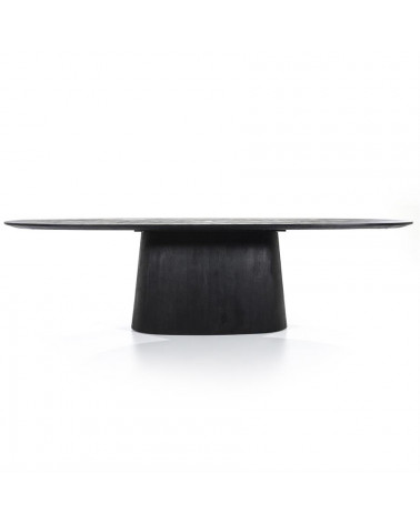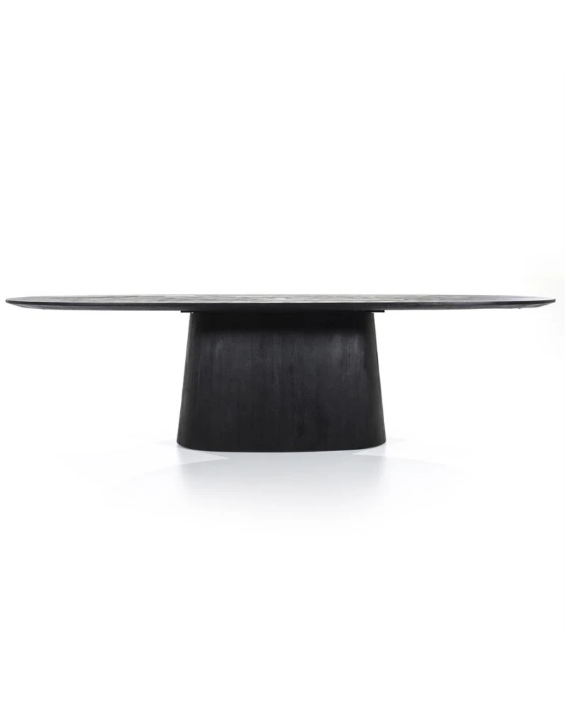 Jedálenský stôl Aron od Eleonory sa stane srdcom vášho domova a ponúka dokonalé prostredie pre nezabudnuteľné stretnutia a jedlá. Tento stôl vyrobený z mangového dreva v bohatom čiernom odtieni vyžaruje teplo a útulnosť. Jeho oválna stolová doska podopretá jednou centrálnou základňou vytvára intímnu a príjemnú atmosféru, ktorá je ideálna na spoločné jedlá a milé chvíle.
