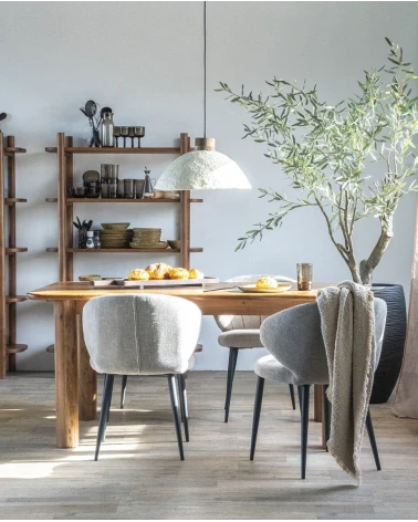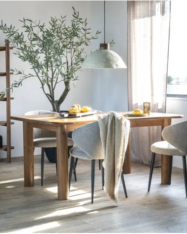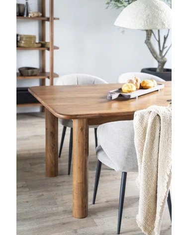 Doprajte svojej jedálni eleganciu a prirodzenú krásu s jedálenským stolom vyrobeným z masívneho akáciového dreva. Tento stôl vyniká svojimi zaoblenými tvarmi a masívnymi nohami, dodáva interiéru mäkkosť a moderný vzhľad.