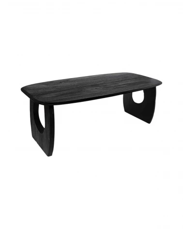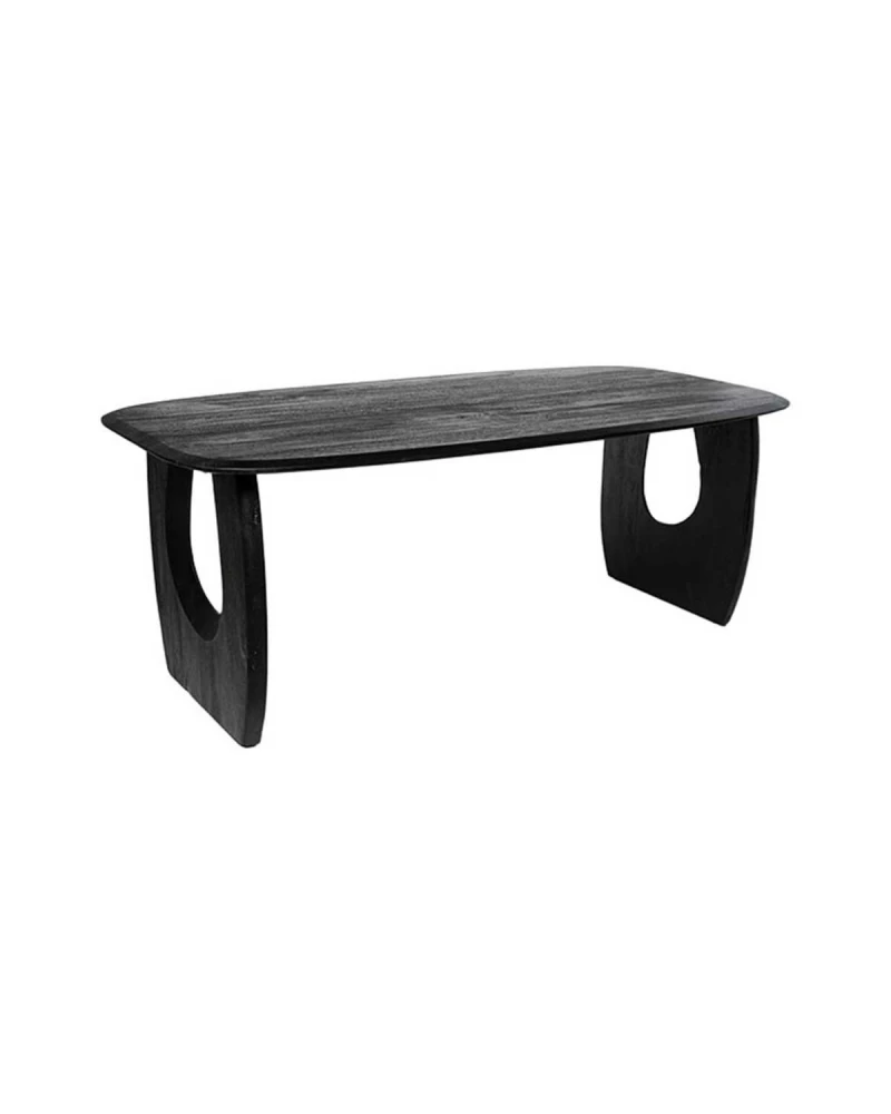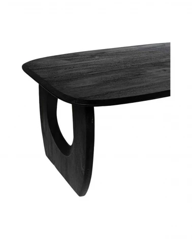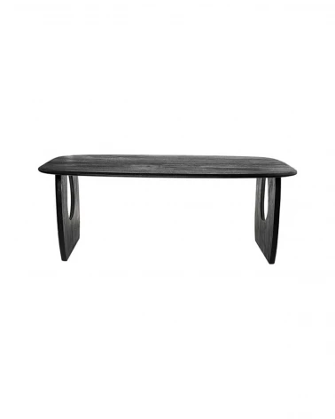 Stôl WAZIR je originálny a sofistikovaný kúsok, vyrobený z masívneho akáciového dreva s elegantným čiernym povrchovým prevedením. Jeho obdĺžniková doska so zaoblenými rohmi vyniká výraznou textúrou drevených letokruhov, ktorá jej dodáva prirodzený a autentický vzhľad.