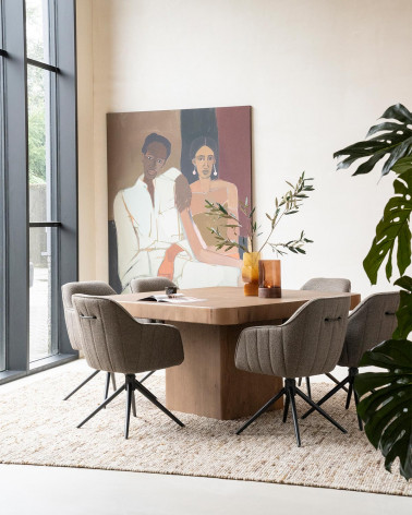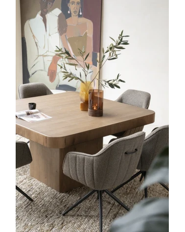 Vneste do svojej jedálne nádych luxusu s naším štvorcovým dubovým jedálenským stolom od Eleonora Harmonie. Tento stôl vyrobený z prémiového dubového dreva vyžaruje eleganciu a sofistikovanosť, vďaka čomu je perfektným doplnkom vášho domova. Jeho štvorcový tvar poskytuje dostatok priestoru na zábavu a vytvára harmonický kulinársky zážitok.