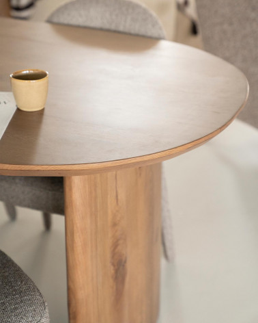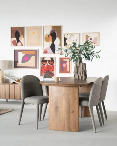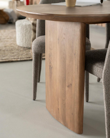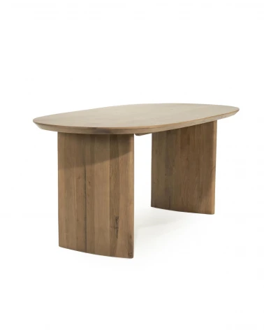 Jedálenský stôl Dex, vyrobený z prvotriedneho dubového dreva, spája minimalistický dizajn s prepracovanou funkčnosťou. Jeho čistá silueta a prírodná štruktúra dreva oslavujú severskú estetiku a zároveň poskytujú elegantný ústredný prvok vášho jedálenského priestoru. Jeho veľkosť ponúka všestranné možnosti umiestnenia, ideálne pre intímne večere aj sofistikované stretnutia v modernej domácnosti.