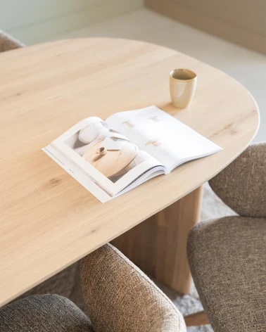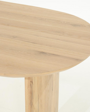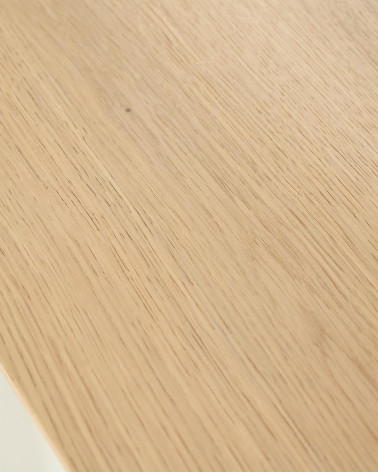 Jedálenský stôl Dex, vyrobený z prvotriedneho dubového dreva, spája minimalistický dizajn s prepracovanou funkčnosťou. Jeho čistá silueta a prírodná štruktúra dreva oslavujú severskú estetiku a zároveň poskytujú elegantný ústredný prvok vášho jedálenského priestoru. Jeho veľkosť ponúka všestranné možnosti umiestnenia, ideálne pre intímne večere aj sofistikované stretnutia v modernej domácnosti.
