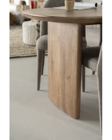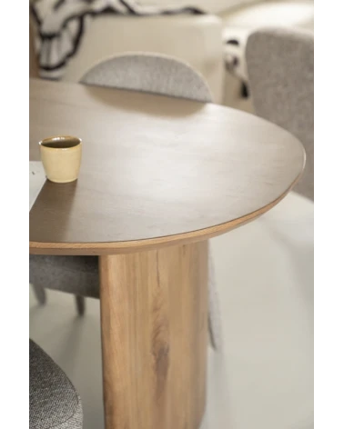 Jedálenský stôl Dex, vyrobený z prvotriedneho dubového dreva, spája minimalistický dizajn s prepracovanou funkčnosťou. Jeho čistá silueta a prírodná štruktúra dreva oslavujú severskú estetiku a zároveň poskytujú elegantný ústredný prvok vášho jedálenského priestoru. Jeho veľkosť ponúka všestranné možnosti umiestnenia, ideálne pre intímne večere aj sofistikované stretnutia v modernej domácnosti.