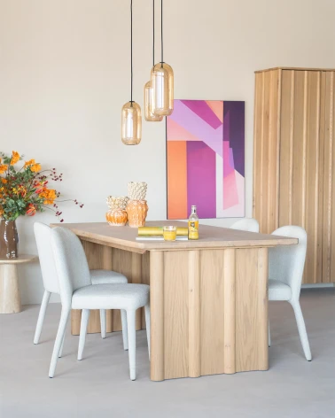 Pozdvihnite svoj kulinársky zážitok s týmto obdĺžnikovým dubovým jedálenským stolom z kolekcie Eleonora Jake. Tento stôl vyrobený z prémiového dubového dreva sa pýši elegantnými líniami a nadčasovým dizajnom, ktorý dodá sofistikovanosti každej jedálni. Vylepšite si priestor týmto exkluzívnym kusom nábytku.