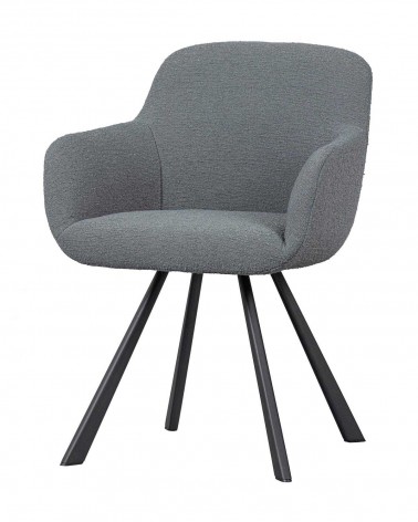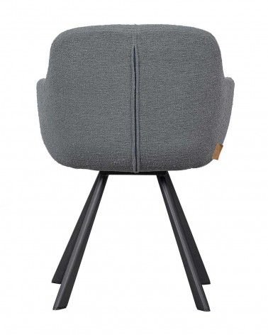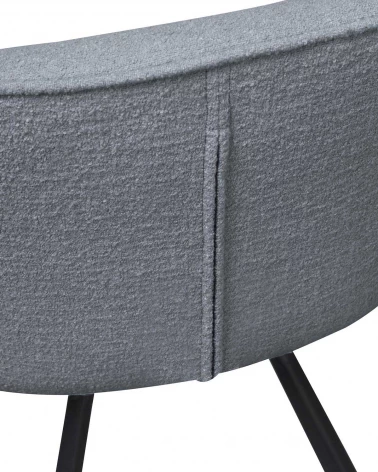 Jedálenská stolička Juno má kovové nohy s matnou čiernou práškovou farbou. Sedák je vyrobený z oceľového rámu a preglejky, pokrytej polyuretánovou penou. Sedák je čalúnený vlneným buklé. Toto mäkké buklé má elegantnú textúru, ktorá okamžite prináša teplo do domova. Technika hustého tkania zaisťuje pevnosť látky, čo znamená, že buklé sa ľahko neopotrebuje a neroztrhne. Každá farba má tiež vysokú stálosť farieb, ale odporúča sa vyhýbať sa priamemu slnečnému žiareniu, aby nedochádzalo k farebným posunom.