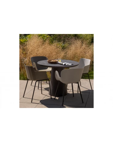 Jedálenská stolička Foppe je z outdoorovej kolekcie holandskej interiérovej značky WOOOD. Pohodlné sedadlo má tvar vane, vďaka čomu získate bezpečné sedenie. Kovové nohy sú chránené pred vetrom a počasím matným čiernym práškovým nástrekom. Tenký dizajn rámu nôh dodáva Foppe vzdušný vzhľad.