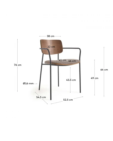 Materiál: 60 % kov, 20 % orechová dyha (Quercus alba), 10 % látka, 10 % pena PU (polyuretán)