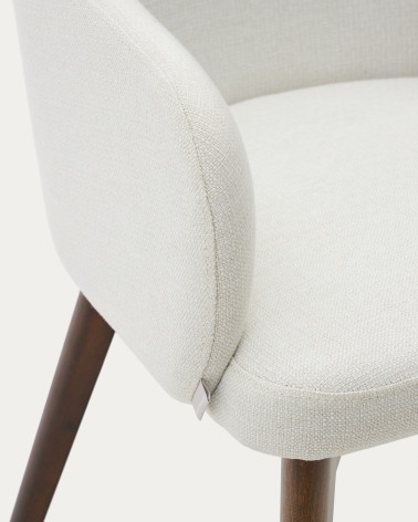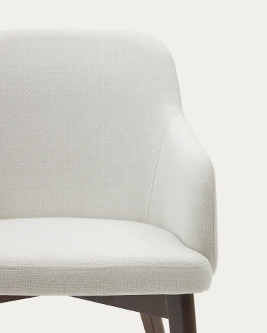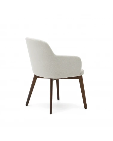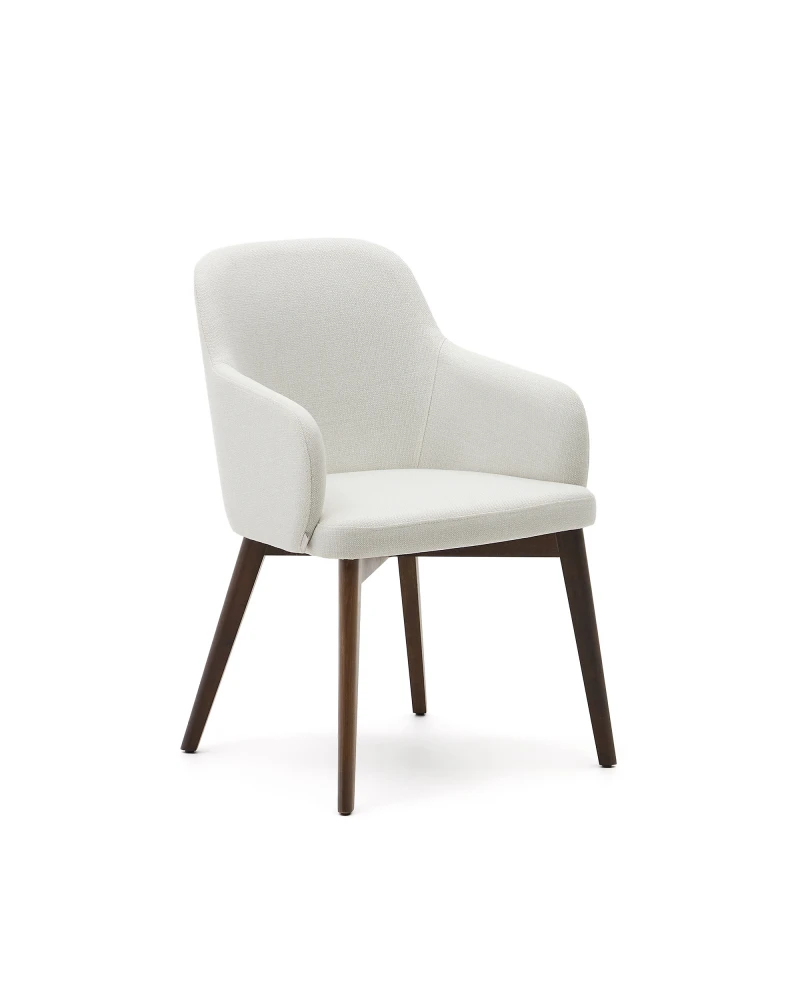 Kreslo čalúnené ženilkou s integrovanými podrúčkami. Nohy sú z masívneho bukového dreva v orechovom prevedení. Vyrobené v Španielsku pomocou tradičných procesov, ktoré znižujú emisie CO2, aby sa zabezpečil nižší dopad na životné prostredie. Drevo s certifikátom FSC s vnútornou štruktúrou podľa normy E0 s nízkymi emisiami formaldehydu. Exkluzívny dizajn, vytvorený pre Kave Home.