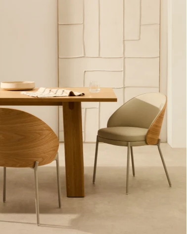 Tri materiály v jednej kolekcii? Výzva splnená s neprekonateľným výsledkom. Eamy kombinuje jaseňovú dyhu, čalúnenie a kov v dokonalom dizajne, ktorý dodá štýl vašim rozhovorom po jedle pri stole.