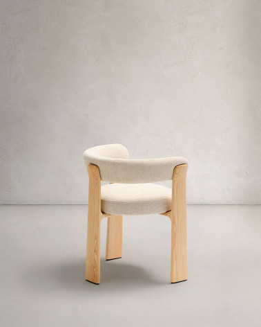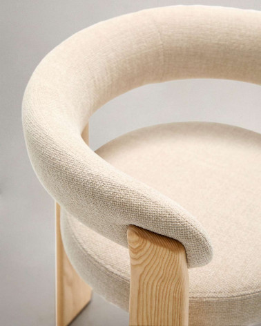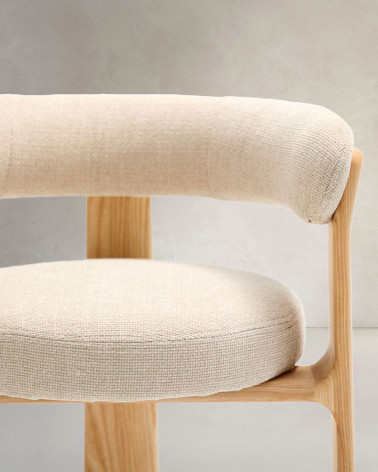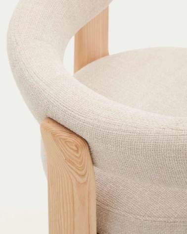 Stolička čalúnená hrubou béžovou ženilkou s recyklovaným polyesterom a nohami z masívneho jaseňového dreva.