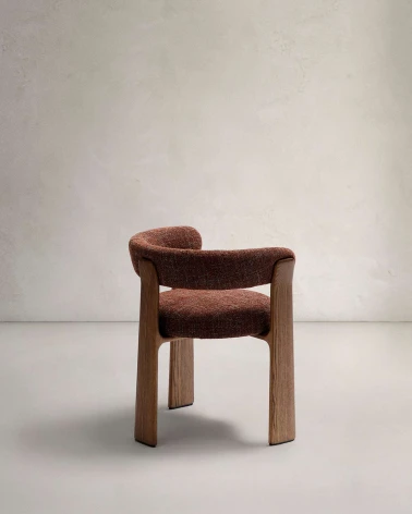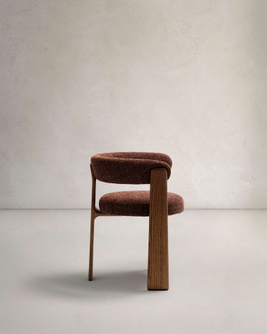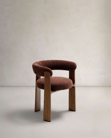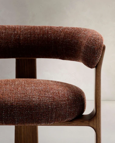 Stolička čalúnená hrubou dvojfarebnou hnedou ženilkou s recyklovaným polyesterom a nohami z masívneho jaseňového dreva v prevedení orech.