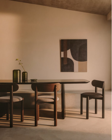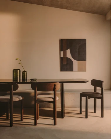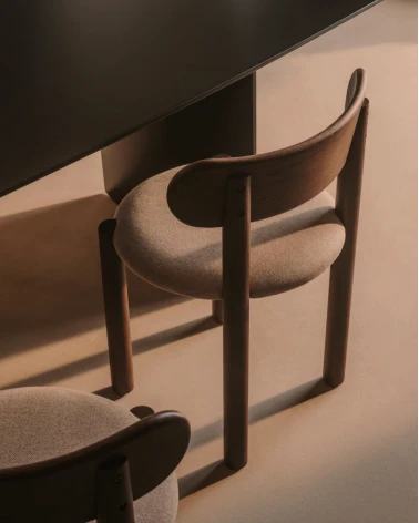 Masívne dubové drevo a ženilka, trendové čalúnenie, sa spájajú pre dosiahnutie maximálneho pohodlia v stoličke Nebai. Dizajn, ktorý pozdvihne štýl vašej jedálne. Vďaka svojim pevným a robustným tvarom sleduje Nebai trend hrubých objemov, ktoré zachovávajú dizajn v rovnováhe so svojimi veľkorysými proporciami a obopínajúcim chrbtom poskytujúcim maximálny komfort a ľahkosť.