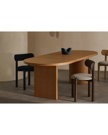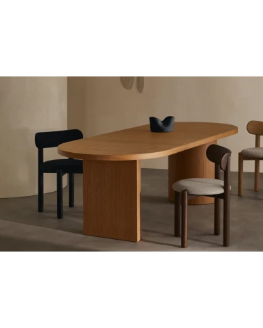 Masívne dubové drevo a ženilka, trendové čalúnenie, sa spájajú pre dosiahnutie maximálneho pohodlia v stoličke Nebai. Dizajn, ktorý pozdvihne štýl vašej jedálne. Vďaka svojim pevným a robustným tvarom sleduje Nebai trend hrubých objemov, ktoré zachovávajú dizajn v rovnováhe so svojimi veľkorysými proporciami a obopínajúcim chrbtom poskytujúcim maximálny komfort a ľahkosť.