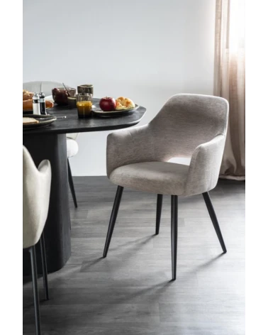 Vychutnajte si umenie stolovania a radosť zo zdieľania chvíľ s jedálenskou stoličkou Esmee od Eleonory. Jej výrazný dizajn s vykrojeným zadným dielom dodá každému jedálenskému priestoru nádych modernosti. Táto stolička, podporovaná čiernymi kovovými roztiahnutými nohami, je rovnako príjemná, ako aj štýlová, vďaka čomu je ideálnym riešením na posedenie pri rodinných stretnutiach a intímnych jedlách s blízkymi.