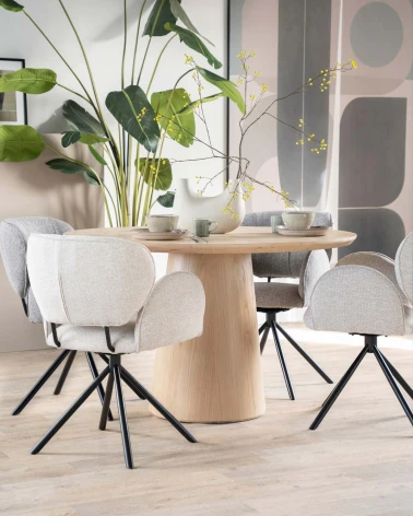Doprajte si zvýšený komfort a štýl s naším štvornožkovým otočným kreslom od Eleonory Rosalin. Jeho jedinečný dizajn a otočná základňa ponúkajú pocit všestrannosti, zatiaľ čo luxusná tkanina a robustná konštrukcia poskytujú dokonalý relax. Pozdvihnite svoj životný priestor týmto sofistikovaným a exkluzívnym kúskom. Otočná o 180° .