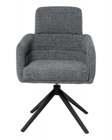 Jej konštrukcia je starostlivo navrhnutá tak, aby ponúkala mimoriadne pohodlný zážitok z používania, pričom vyniká širokým operadlom a podrúčkami, ktoré zaisťujú vyšší stupeň komfortu. Okrem toho je vybavená aj opierkou hlavy, ktorá sa optimálne prispôsobí polohe používateľa. Polstrované sedadlo obsahuje technológiu samostatne uložených pružín, čo zaručuje vysokú úroveň pohodlia a dlhotrvajúcu oporu. Z estetického hľadiska kombinácia kovových nôh v čiernej farbe a kovového detailu na zadnej strane operadla dodáva stoličke moderný a sofistikovaný vzhľad, ktorý sa dokonale hodí do súčasných interiérov.