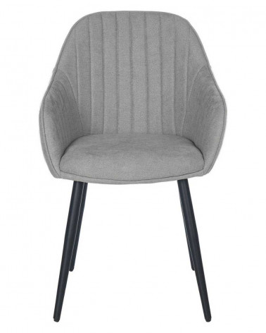 Stolička NATALIA spája pohodlie a dizajn. Jej polstrovaná konštrukcia s opierkami na ruky a vysokým operadlom, spolu s látkou v svetlo sivej farbe so zvislým vzorom, jej dodáva elegantný a sofistikovaný štýl.