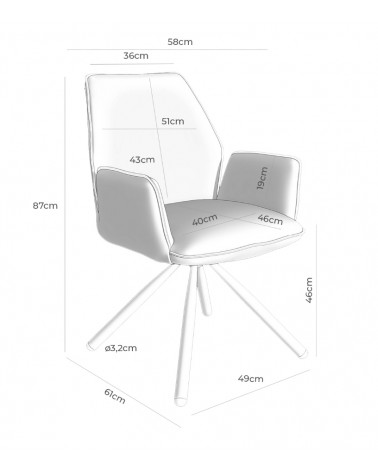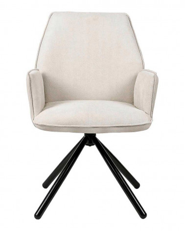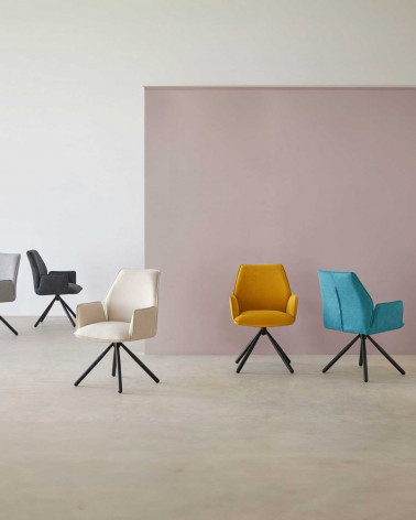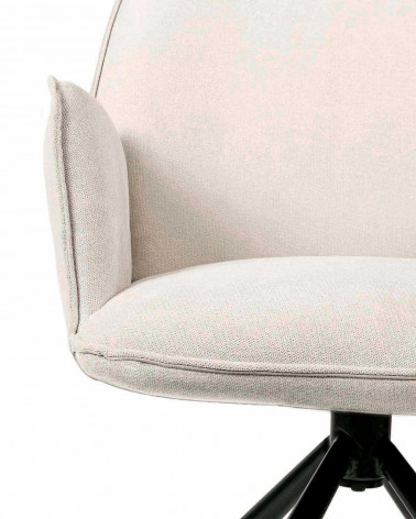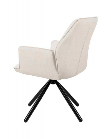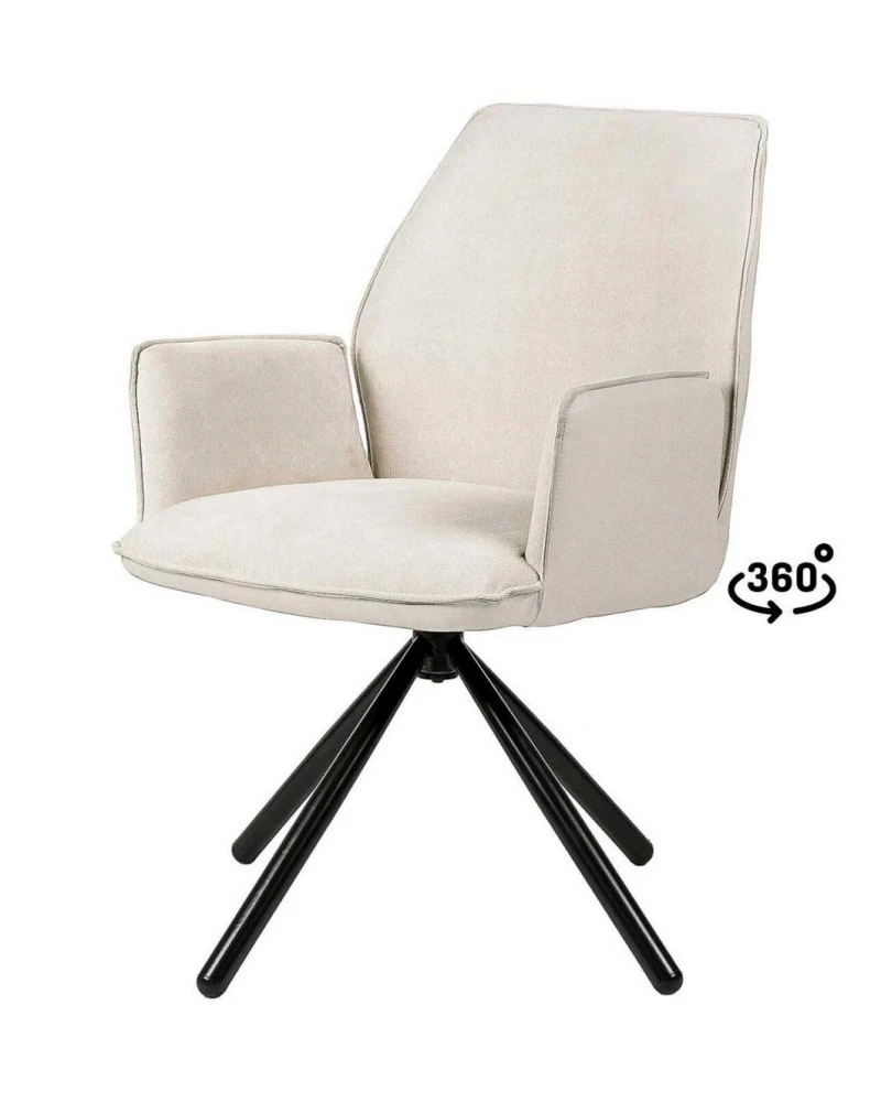 Okrem toho jej otočný mechanizmus s rozsahom 360º umožňuje úplnú rotáciu, čím pridáva funkčnosť a všestrannosť do jej dizajnu. Základňa stoličky je vyrobená z čierneho kovu a jej konštrukcia poskytuje stabilitu.