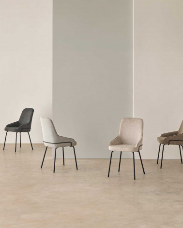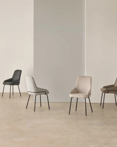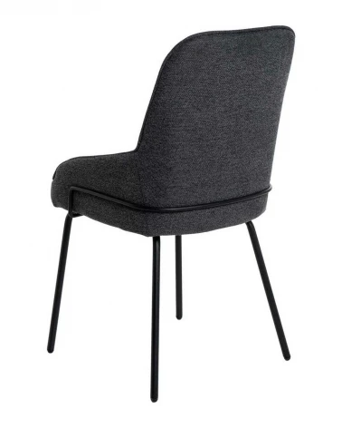 Elegantná stolička s vysokým operadlom a polstrovanou konštrukciou, navrhnutá tak, aby poskytovala maximálne pohodlie aj pri dlhodobom používaní. Ako dizajnový prvok pôsobí čierna kovová lišta na zadnej strane operadla, ktorá spolu s kovovými nohami dodáva stoličke sofistikovaný a moderný vzhľad.
