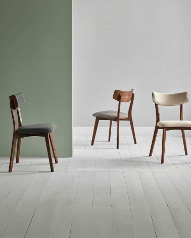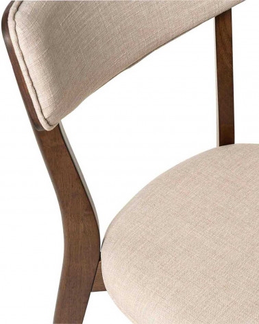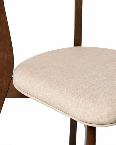 Drevená stolička ANAIS je vyrobená z orechovej dyhy a čalúnená béžovou látkou (100 % polyester) na operadle aj sedadle. Vyniká svojím atraktívnym a moderným dizajnom, vďaka čomu je nevyhnutným doplnkom každej jedálne, bez ohľadu na štýl, či už klasický, koloniálny, škandinávsky alebo minimalistický.