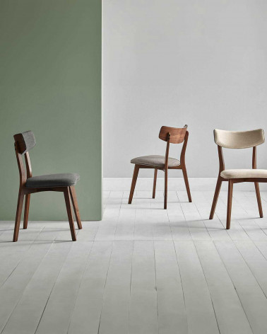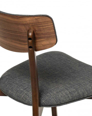 Drevená stolička ANAIS je vyrobená z orechovej dyhy a čalúnená tmavo sivou látkou (100 % polyester) na operadle aj sedadle. Vyniká svojím atraktívnym a moderným dizajnom, vďaka čomu je nevyhnutným doplnkom každej jedálne, bez ohľadu na štýl, či už klasický, koloniálny, škandinávsky alebo minimalistický.