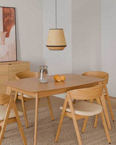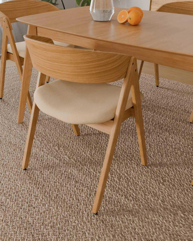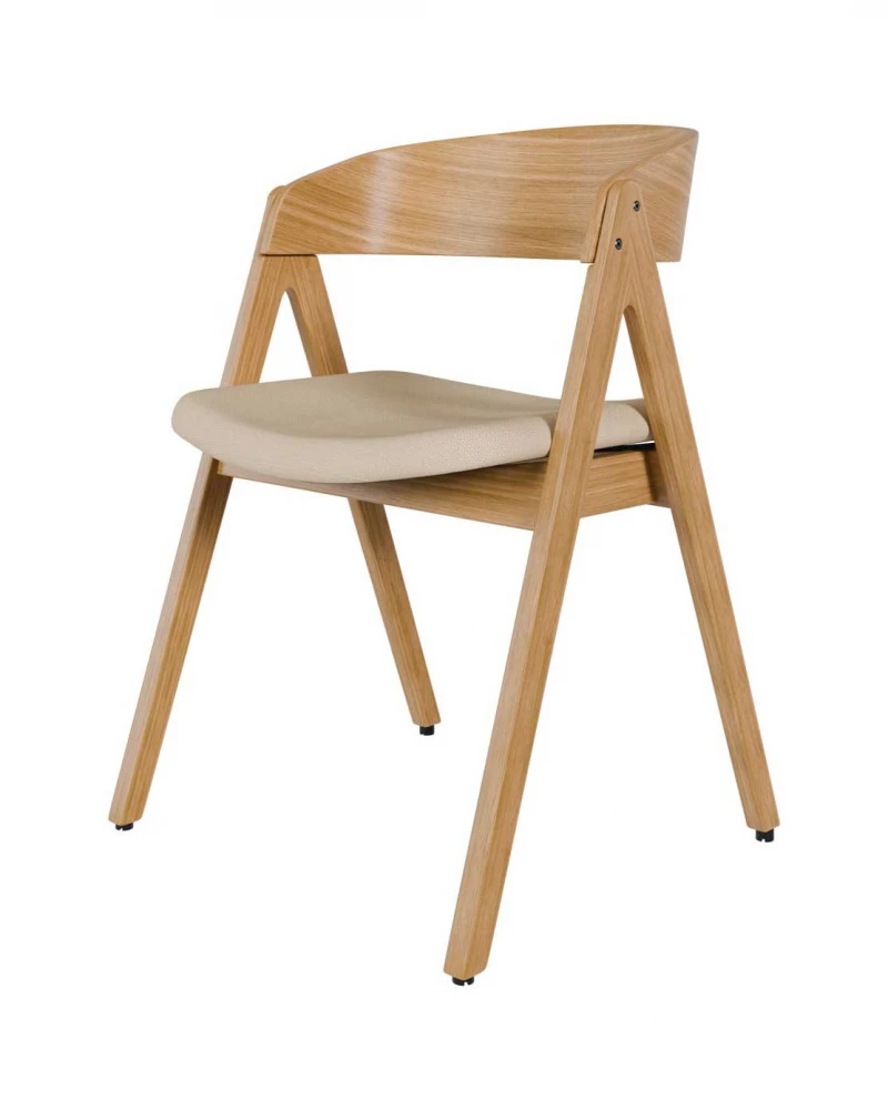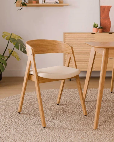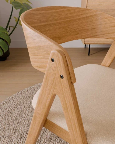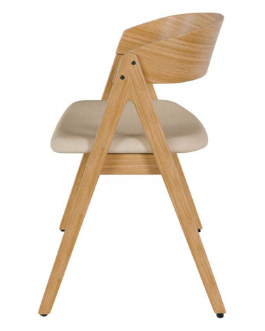 Stolička RINA predstavuje dokonalú kombináciu štýlu a pohodlia. Elegantná stolička z dubovej dyhy so sedadlom čalúneným béžovou látkou.