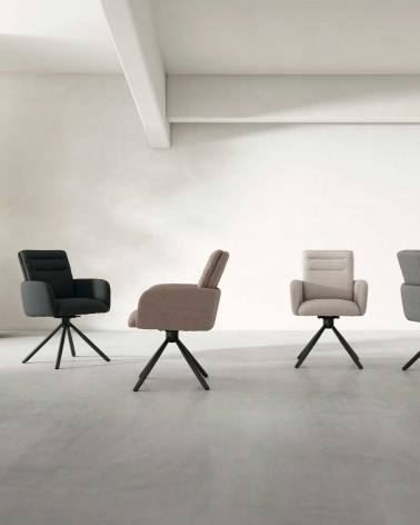 Otočná Stolička LINDA má konštrukciu s čistými, rovnými líniami, vysokým operadlom a opierkami na ruky, ktoré vďaka plnému polstrovaniu poskytujú ešte väčšie pohodlie. Čalúnenie z látky chenille je neuveriteľne jemné na dotyk a ponúka jedinečný pocit komfortu. Jej textúra zachytáva svetlo a vytvára jemné farebné odtiene v závislosti od smeru vlákien.