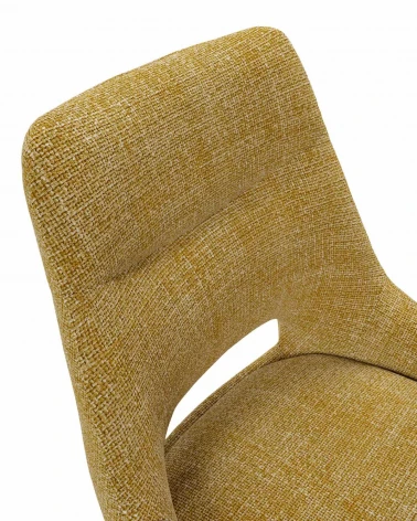 Stolička CALLIE vyniká svojím originálnym dizajnom so širokým operadlom a elegantným otvoreným detailom, ktorý jej dodáva sofistikovaný vzhľad. Čalúnenie z kvalitnej látky a plné polstrovanie zaručujú výnimočné pohodlie, ideálne aj na dlhé sedenie. Robustné a štíhle nohy zabezpečujú stabilitu a dlhú životnosť.