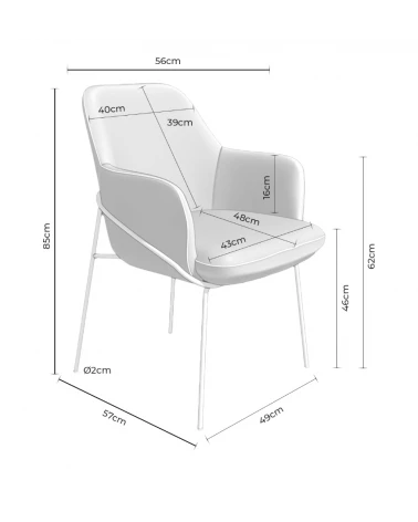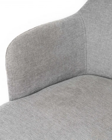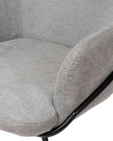 Jej moderný a súčasný vzhľad zvýrazňuje kombinácia svetlosivého čalúnenia a kovových prútov na nohách. Okrem toho vystuženie operadla poskytuje nielen väčšiu pevnosť, ale aj dotyk elegancie.