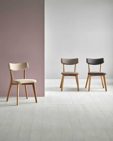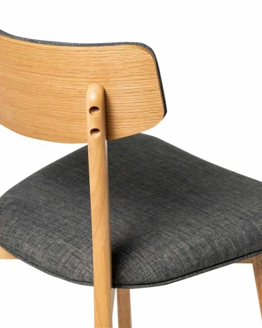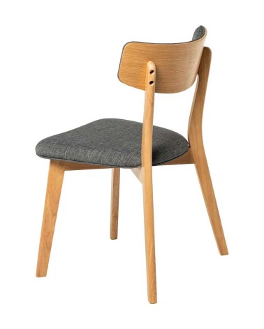 Drevená stolička ANAIS je vyrobená z dubovej dyhy a čalúnená tmavo sivou látkou (100 % polyester) na operadle aj sedadle. Vyniká svojím atraktívnym a moderným dizajnom, vďaka čomu je nevyhnutným doplnkom každej jedálne, bez ohľadu na štýl, či už klasický, koloniálny, škandinávsky alebo minimalistický.