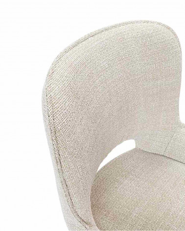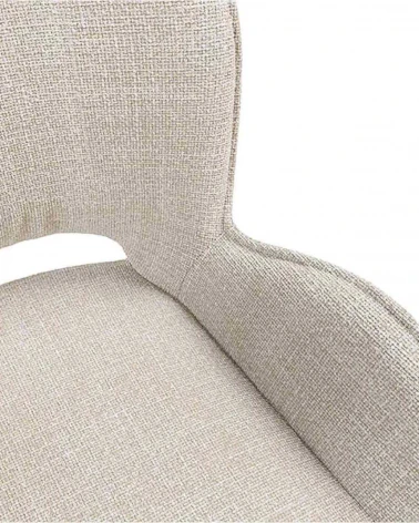 Zakrivené operadlo a opierky na ruky stoličky ASTRID jej dodávajú sofistikovaný a elegantný vzhľad. Čalúnenie z béžovéj látky vytvára neutrálny a univerzálny tón, vďaka čomu sa stolička ľahko začlení do rôznych štýlov interiéru.