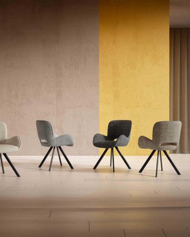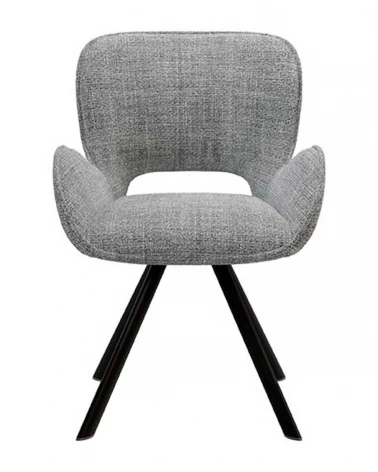 Zakrivené operadlo a opierky na ruky stoličky ASTRID jej dodávajú sofistikovaný a elegantný vzhľad. Čalúnenie zo svetlosivej látky vytvára neutrálny a univerzálny tón, vďaka čomu sa stolička ľahko začlení do rôznych štýlov interiéru.