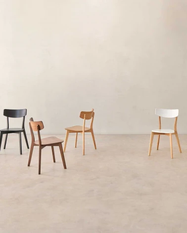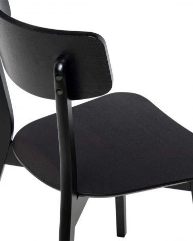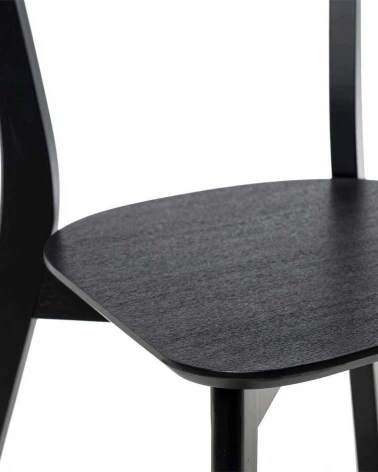 Stolička ALAIA vyniká svojím elegantným a minimalistickým dizajnom, vďaka čomu je ideálna pre moderné priestory a rôzne typy interiérov, ako sú jedálne, kuchyne či obývacie izby. Vyrobená z dreva hevea a lakovaná do sofistikovanej čiernej farby, stolička sa vyznačuje čistými líniami a jemne zaoblenými tvarmi, ktoré podčiarkujú jej prepracovanú siluetu.