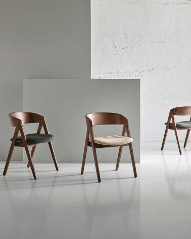 Stolička RINA predstavuje dokonalú kombináciu štýlu a pohodlia. Elegantná stolička z dubovej dyhy so sedadlom čalúneným béžovou látkou.