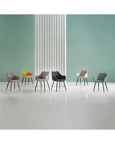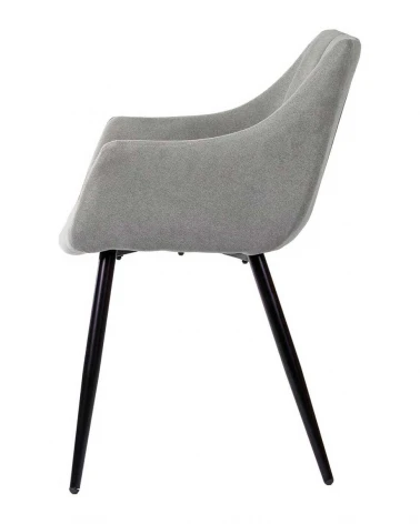 Stolička FIONA vyniká svojím súčasným dizajnom a vysokým komfortom. Jej zakrivené operadlo s vertikálnym prešívaním podčiarkuje moderný štýl. Sedadlo aj operadlo sú čalúnené a polstrované v svetlo sivej látke, ktorá ponúka dokonalú kombináciu pohodlia a štýlu. Štíhle, šikmo postavené nohy v čiernej farbe vytvárajú pôsobivý kontrast so svetlým poťahom a zároveň zaisťujú optimálnu stabilitu.